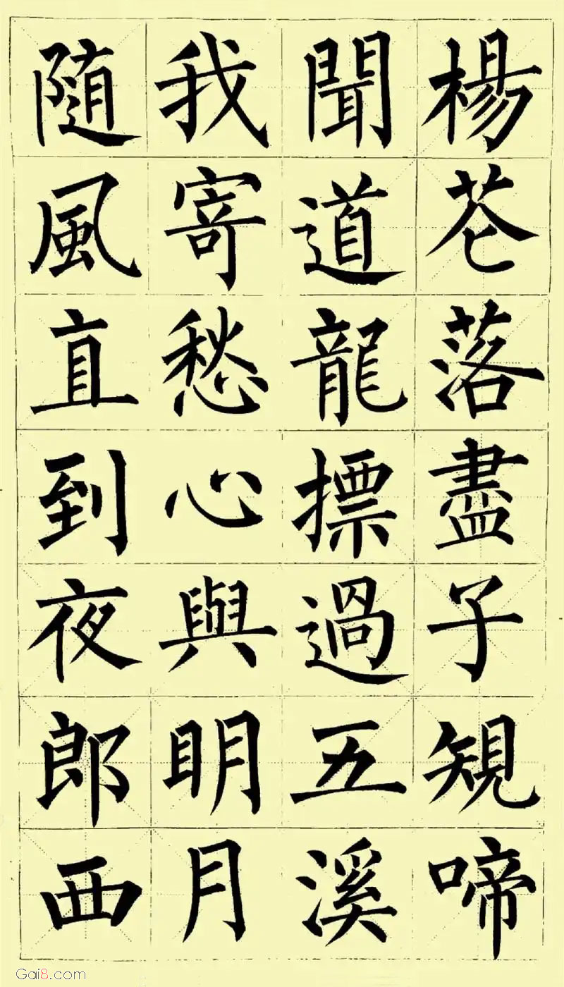 【杨花落尽子规啼,闻道龙标过五溪 - 书法作品 - 概吧】杨花落尽子规啼,闻道龙标过五溪。 我寄愁心与明月,随风直到夜郎西。 李白《闻王昌龄左迁龙标遥有此寄》http://www.gai8.com/shufa/10446.html